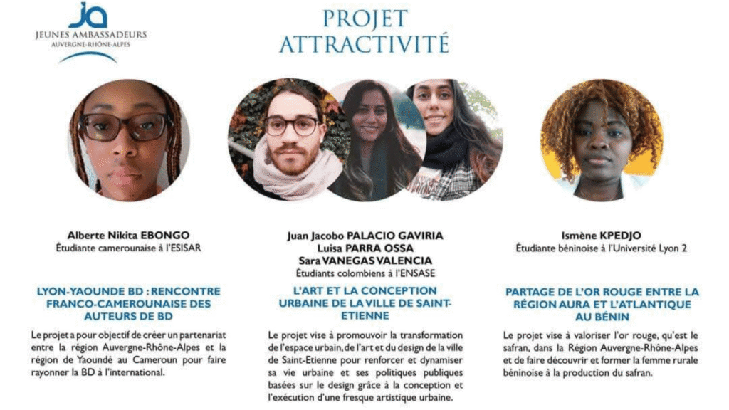 Tout a commencé en 2021. Ismène KPEDJO, alors admise au programme des Jeunes Ambassadeurs (JA) de la région Auvergne Rhône-Alpes en France, découvre le safran par le biais de sa marraine, Anne-Marie LETESSIER.